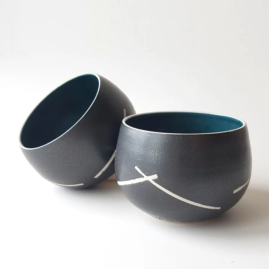 Les formes du fait d'un tournage à la main peuvent légèrement varier, les émaux suivant l'emplacement des objets dans le four ou le renouvellement du bain d'émail peuvent évoluer, mais l'apparence de l'objet respectera toujours l'aspect des visuels proposés.