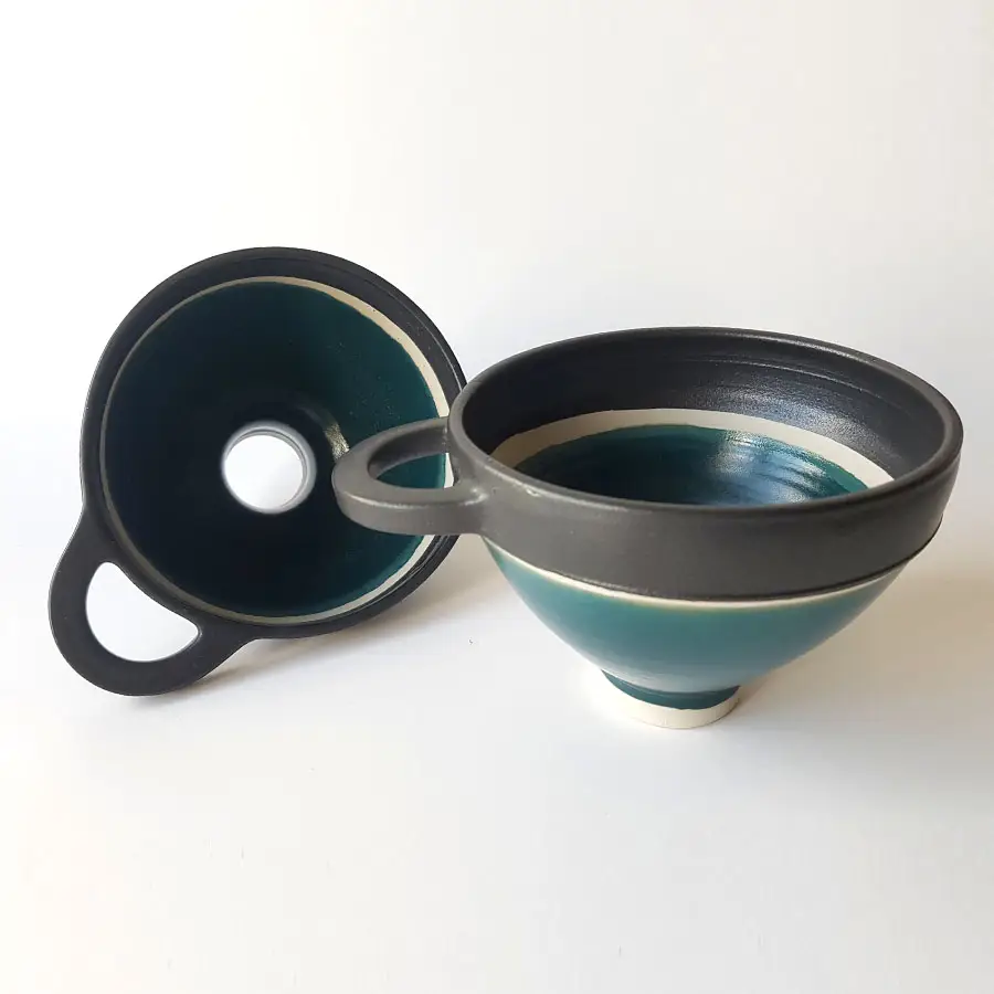 Les formes du fait d'un tournage à la main peuvent légèrement varier, les émaux suivant l'emplacement des objets dans le four ou le renouvellement du bain d'émail peuvent évoluer, mais l'apparence de l'objet respectera toujours l'aspect des visuels proposés.