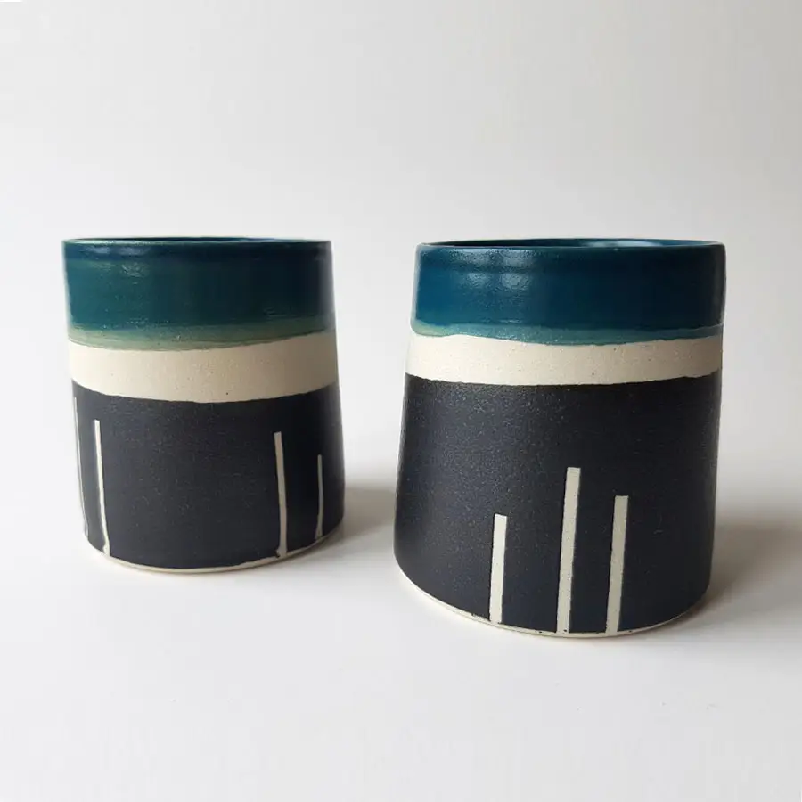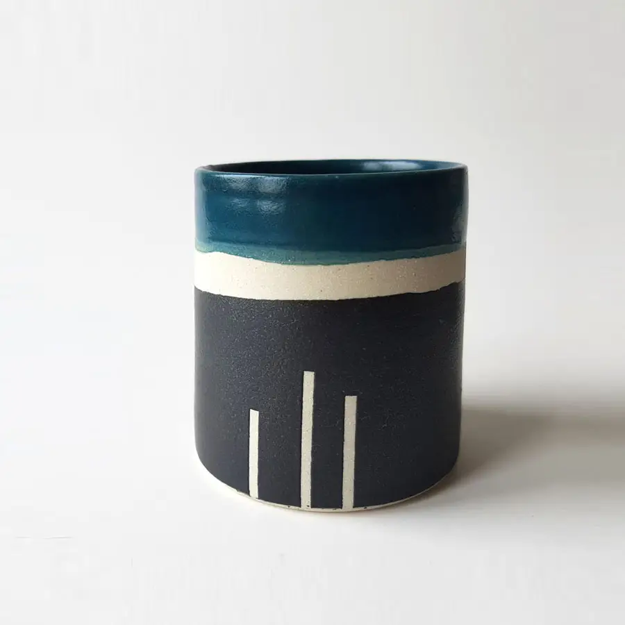 Gobelet en grès tourné et décoré par mes soins. il passe au lave-vaisselle et micro-onde.